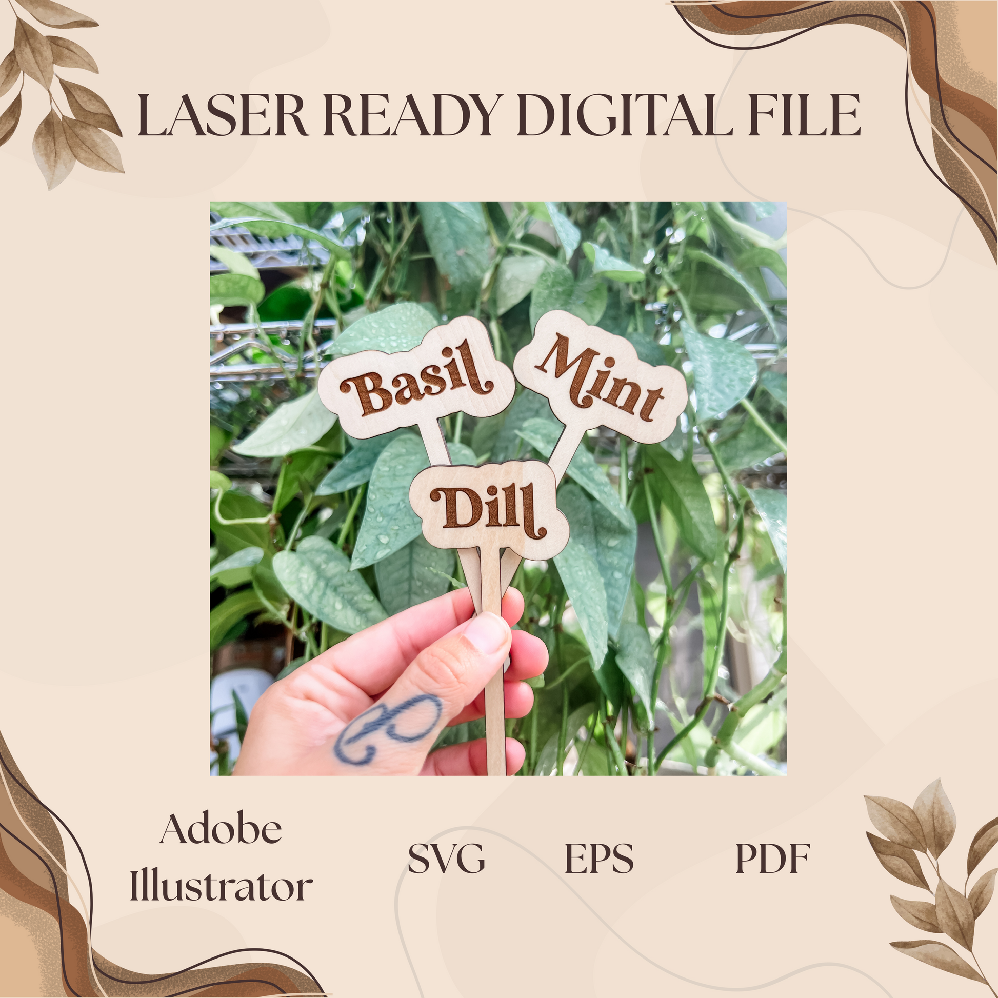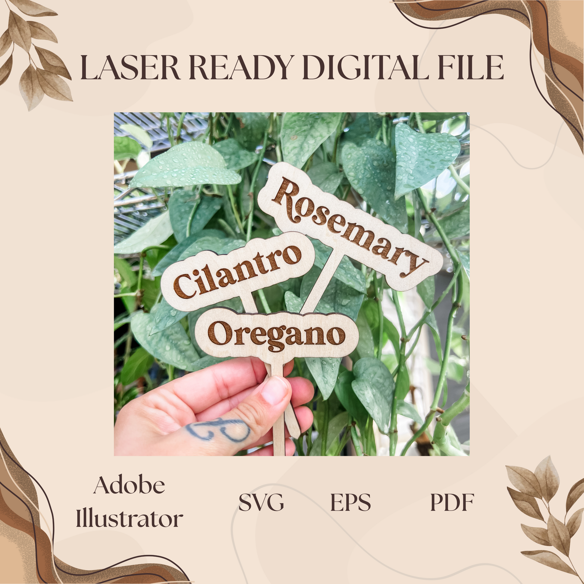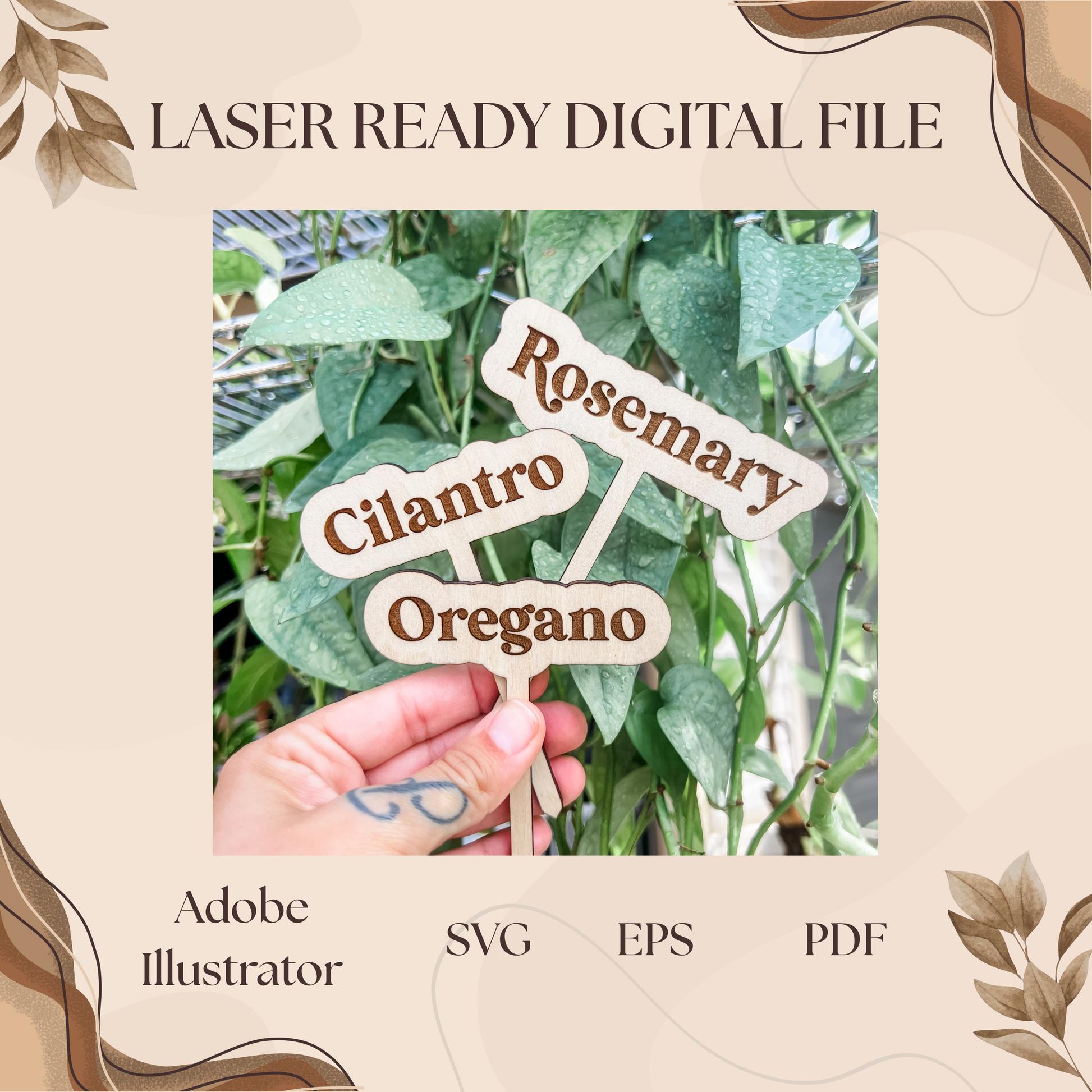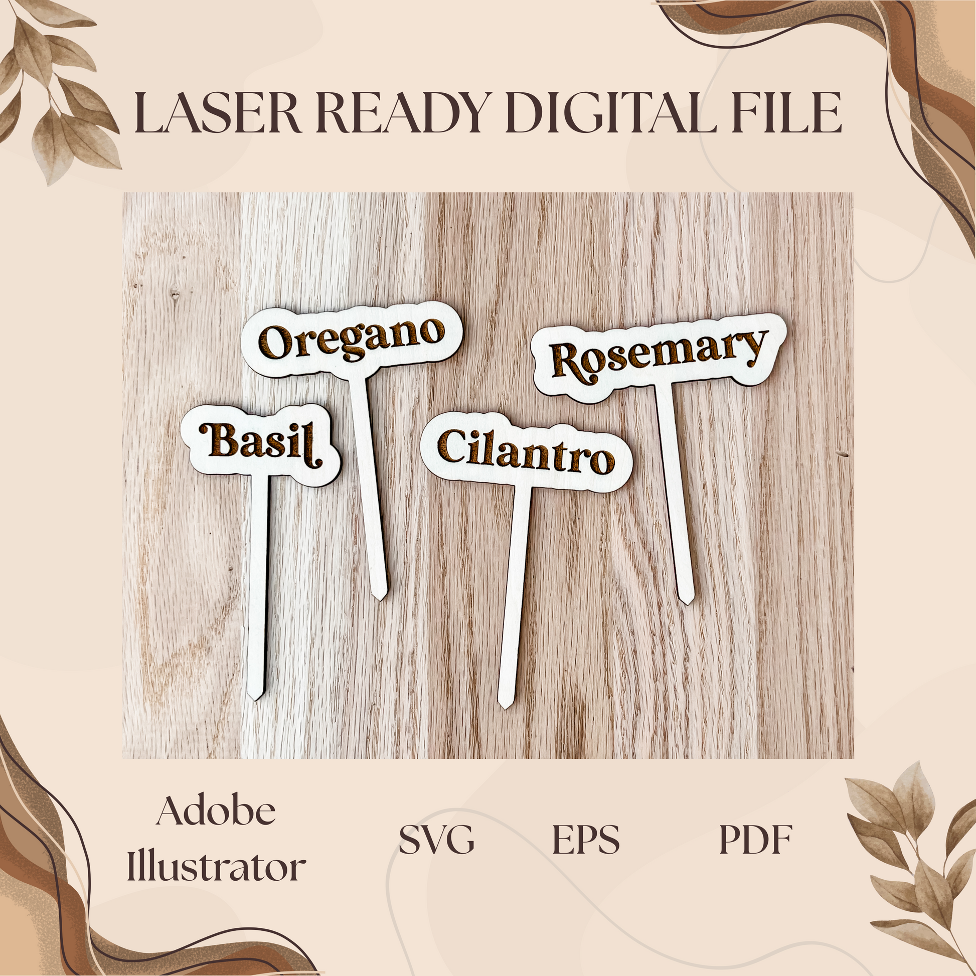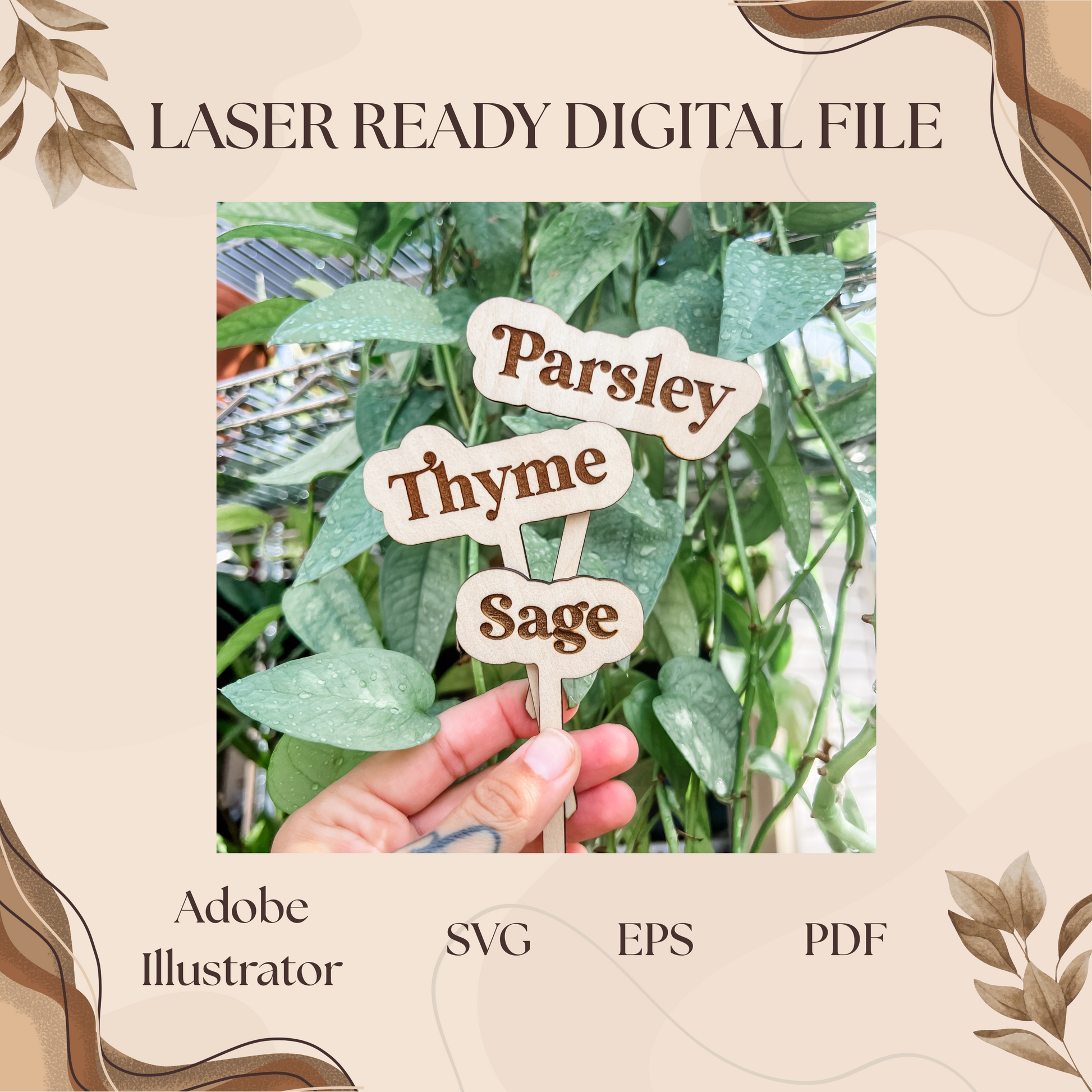 Garden Herb Stakes Set of 9, Herb Markers, Garden Signs | Engrave & Cut File | Adobe Illustrator, SVG, EPS, PDF | Glowforge, Cricut Ready